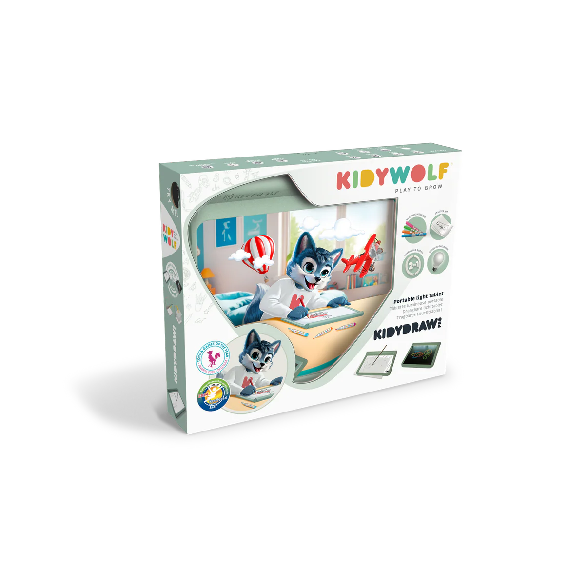 De KIDYWOLF wolf begeleidt je kleintjes op het speelse pad dat leidt naar een gelukkig en voldaan leven. Hij belichaamt de eenheid van de roedel en de aandachtige zorg die elke wolf aan zijn pups geeft. Wolven zijn tolerante dieren en accepteren andere eenzame wolven in hun kudde.