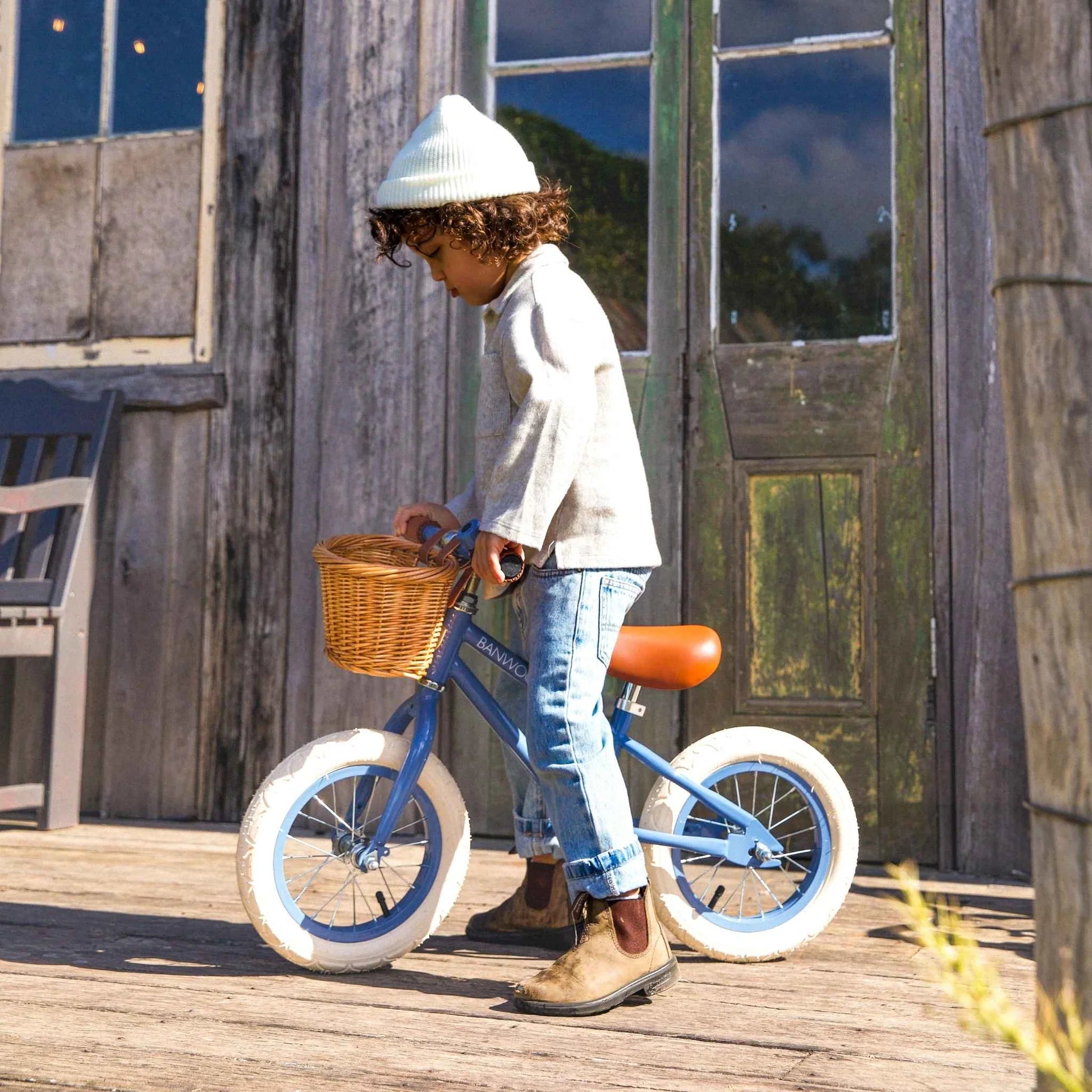 Met een verstelbaar zadel en stuur dat gemakkelijk te verstellen is naarmate je kind groeit, duurzame handgrepen van veganistisch leer voor een stevige grip en een afneembare rieten mand om het favoriete speelgoed van je kind mee te nemen voor een dag vol avontuur.