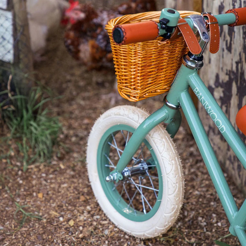 Met een verstelbaar zadel en stuur dat gemakkelijk te verstellen is naarmate je kind groeit, duurzame handgrepen van veganistisch leer voor een stevige grip en een afneembare rieten mand om het favoriete speelgoed van je kind mee te nemen voor een dag vol avontuur.