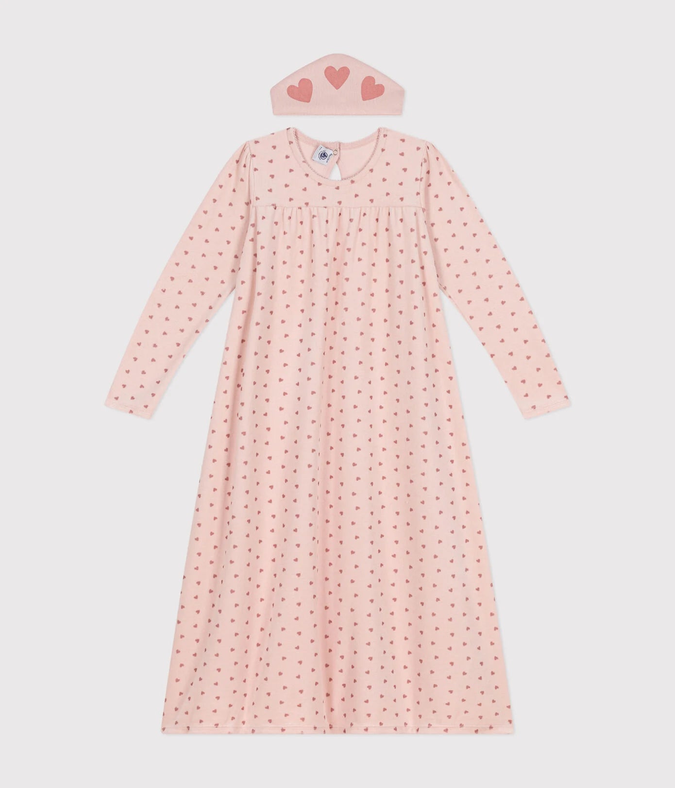 Petit Bateau fluwelen nachtkleed met tiara kroontje - hartjesmotief - prinsessenkleed