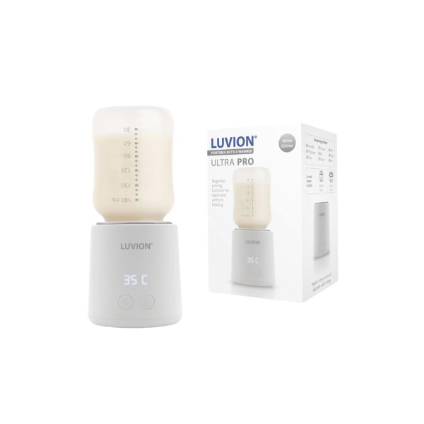 De Luvion Ultra Pro Flessenwarmer is perfect om het flesje voor je kindje mee op te warmen. Dankzij het compacte formaat is deze flessenwarmer zeer geschikt om mee te nemen wanneer je een dagje uit gaat. Natuurlijk is de flessenwarmer ook ideaal wanneer je lekker thuis bent. Wat een groot voordeel is aan deze flessenwarmer, is dat de melk heel gelijkmatig wordt verwarmd. Hiervoor zit er een speciale stirring functie, oftewel roerfunctie, op de verwarmer. Dit zorgt ervoor dat alle voedingsstoffen van bijvoorbeeld moedermelk behouden blijven. Wanneer je kunstvoeding geeft aan je kindje, zorgt deze roer functie ervoor dat de poeder met het water wordt gemixt. Binnen 3 tot 5 minuten wordt de voeding verwarmd naar de gewenste temperatuur. Er zijn 4 temperatuur instellingen waar je uit kunt kiezen. 37C°, 40C°, 45C° of 50C°. Vervolgens schakelt de flessenwarmer automatisch naar de warmhoudstand om de fles op de juiste temperatuur te houden. De fles blijft op de juiste temperatuur totdat de flessenwarmer wordt afgekoppeld. Ook worden er standaard 2 adapters meegeleverd waarmee een groot aantal flessen aan de flessenwarmer kunnen worden gekoppeld. Dit gaat om de PBW-01 en de PBW-02. Wanneer je een fles hebt die hier niet op gaat passen, zijn er nog een aantal andere adapters los verkrijgbaar.