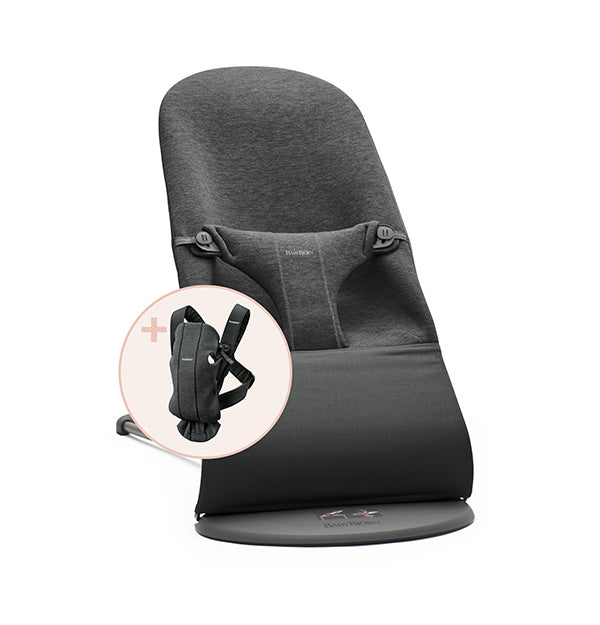 Babybjörn set: wipstoel bliss houtskool + draagzak mini houtskool 3d jersey