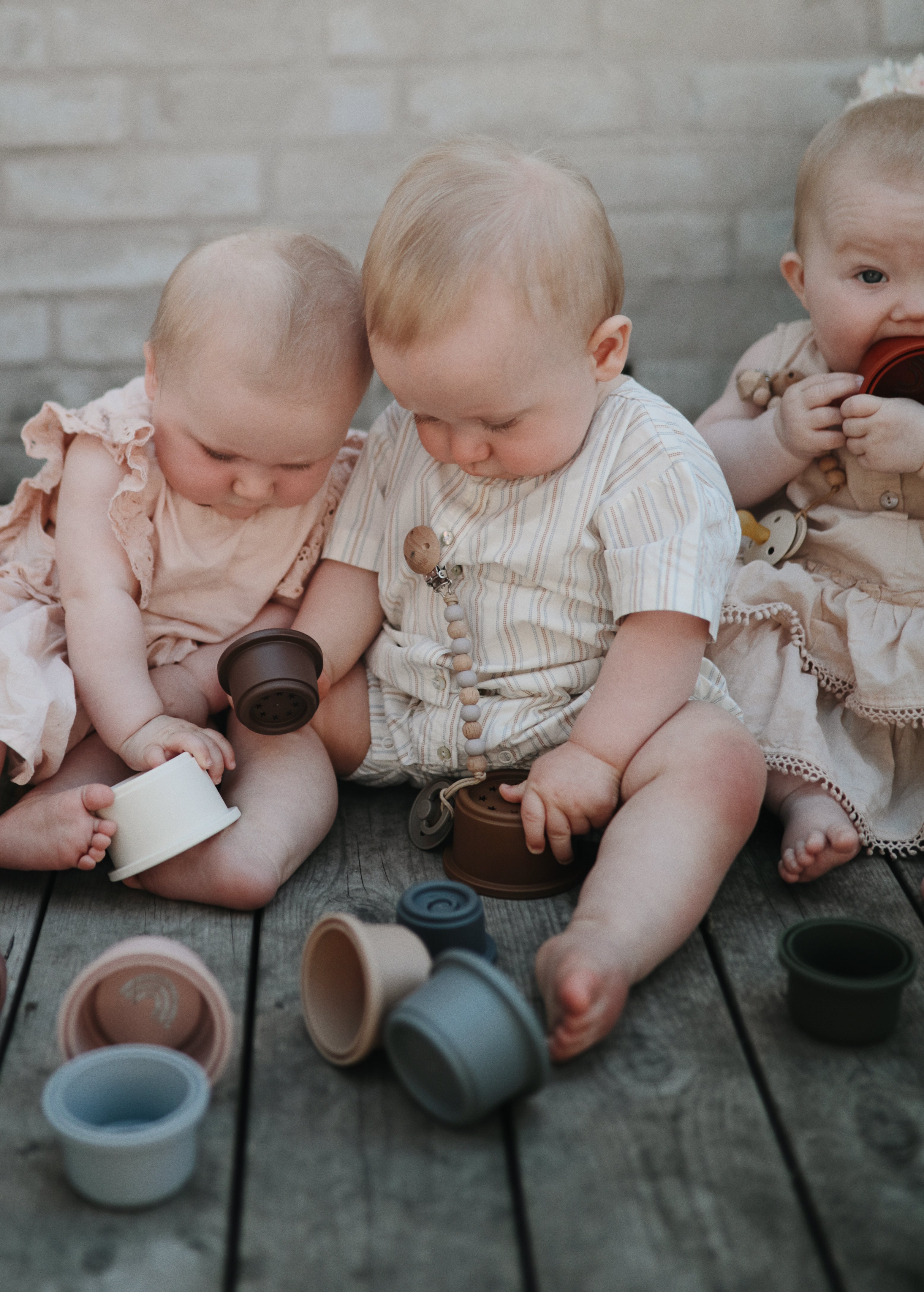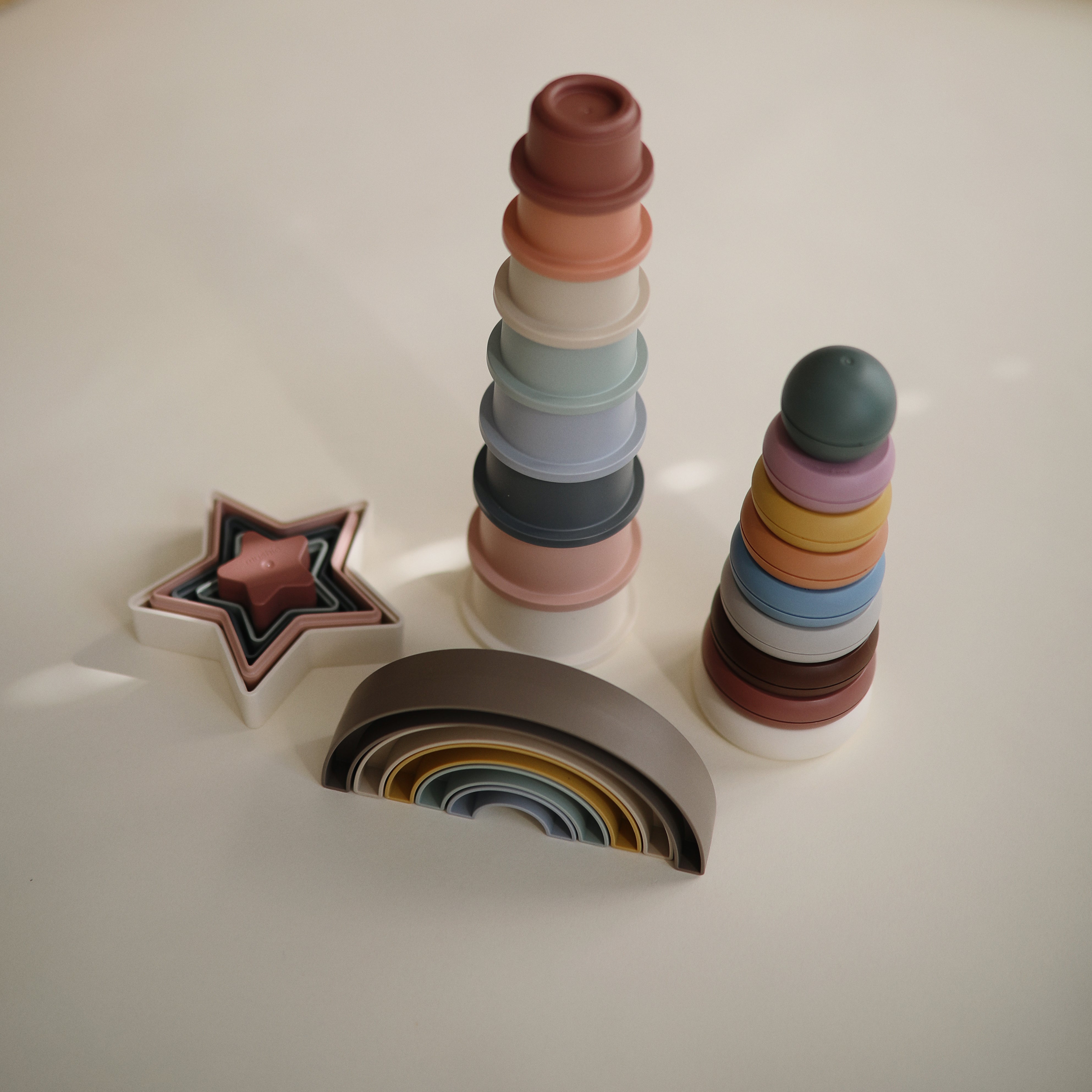 Een stapeltoren bouwen blijft bij veel kinderen favoriet. Deze stapeltoren van Mushie heeft prachtige gekleurde stapelbekers in zachte natuurlijke tinten met mooie details. Kinderen vanaf 6 maanden kunnen ermee spelen. Het stapelen van bekertjes stimuleert ook nog eens de motorische vaardigheden van jouw kleintje. Je kunt er niet alleen binnen mee spelen maar ook in de tuin of gebruik ze als SPEELGOED in bad of onder de douche.