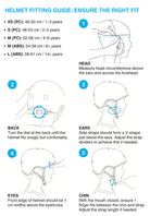 Gebruik de bijgevoegde fitting guide voor het kiezen van de correcte maat. Deze helm is verkrijgbaar in de volgende maten: