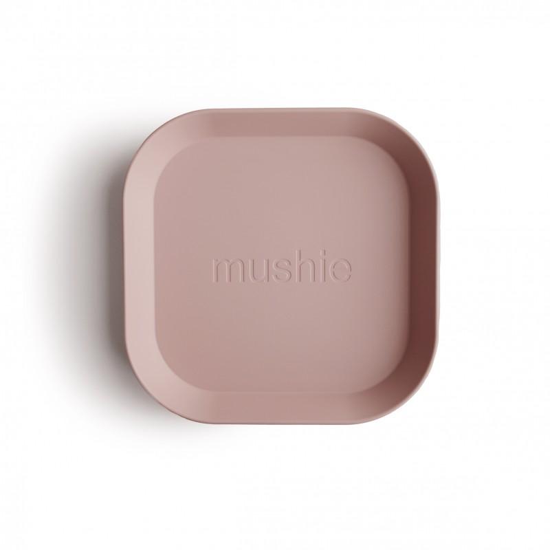 De set van 2 vierkante borden met afgeronde hoeken van Mushie is gemaakt van sterke kunststof waardoor ze zeker tegen een stootje kunnen.