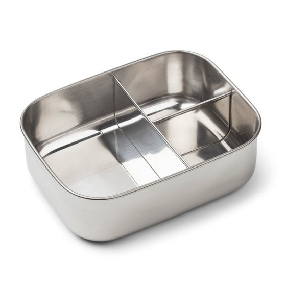 Lichte, duurzame brooddoos met vakjes in RVS en flexibel deksel in silicone. Roestvrij staal is een geweldig materiaal voor het bewaren van voedsel aangezien het geen kleuren, smaken of geuren opneemt. De doos is verdeeld in 3 handige compartimenten. Dit motiveert om een gevarieerde lunch samen te stellen.