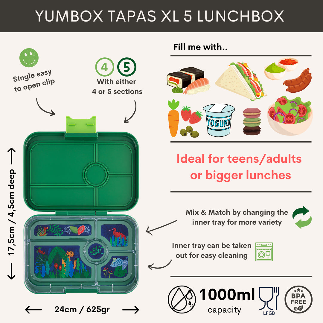 Yumbox Tapas XL met 5 vakken - Palm Green / Jungle tray
