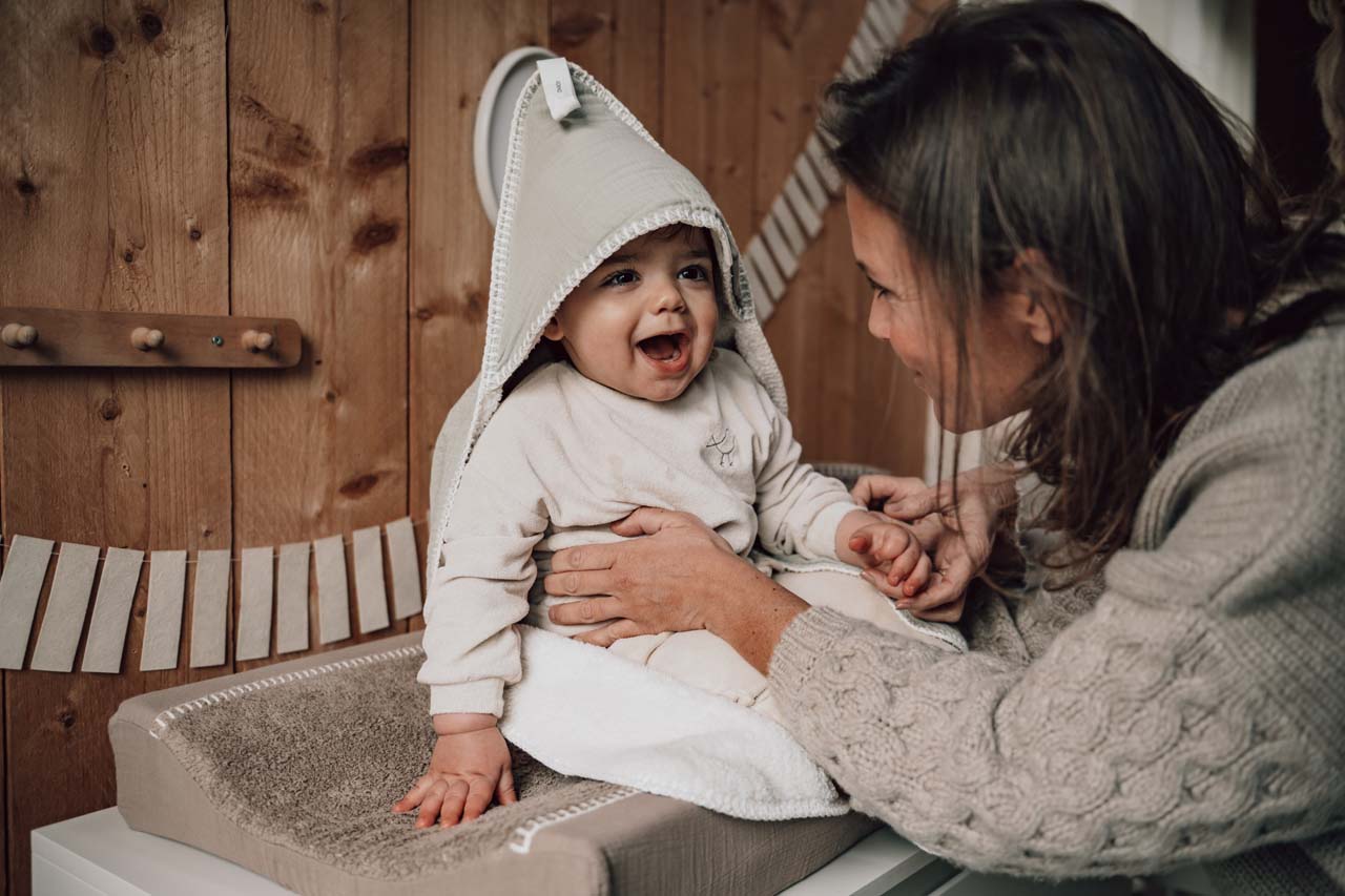 De Koeka omslagdoek met capuchon is gevoerd met lusvast badstof en gebruik je om je baby in te wikkelen. Deze omslagdoek is voorzien van een opening zodat de doek ook met de gordels van de auto- of wipstoel gebruikt kan worden. Zo blijft je kleintje altijd comfortabel warm, zowel in huis als onderweg. De omslagdoek is ook fijn om te gebruiken tijdens het voeden. Met de ophanglus hangt de doek altijd binnen handbereik in de bad- of babykamer. Neem je omslagdoek ook mee naar het consultatiebureau; ideaal voor als je nog even op je afspraak wacht.