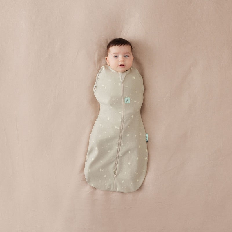 De ergoCocoon is een makkelijke inbaker-slaapzak van biologisch katoen . Door de natuurlijke rek in de stof kan de baby zich vrij bewegen, maar zich toch veilig en geborgen voelen omdat de stof wel om het lijfje aansluit. Dankzij de rits is het inbakeren in een mum van tijd gepiept. Bovendien ook makkelijk om snel luiers te verschonen zonder te ‘ontbakeren’.
