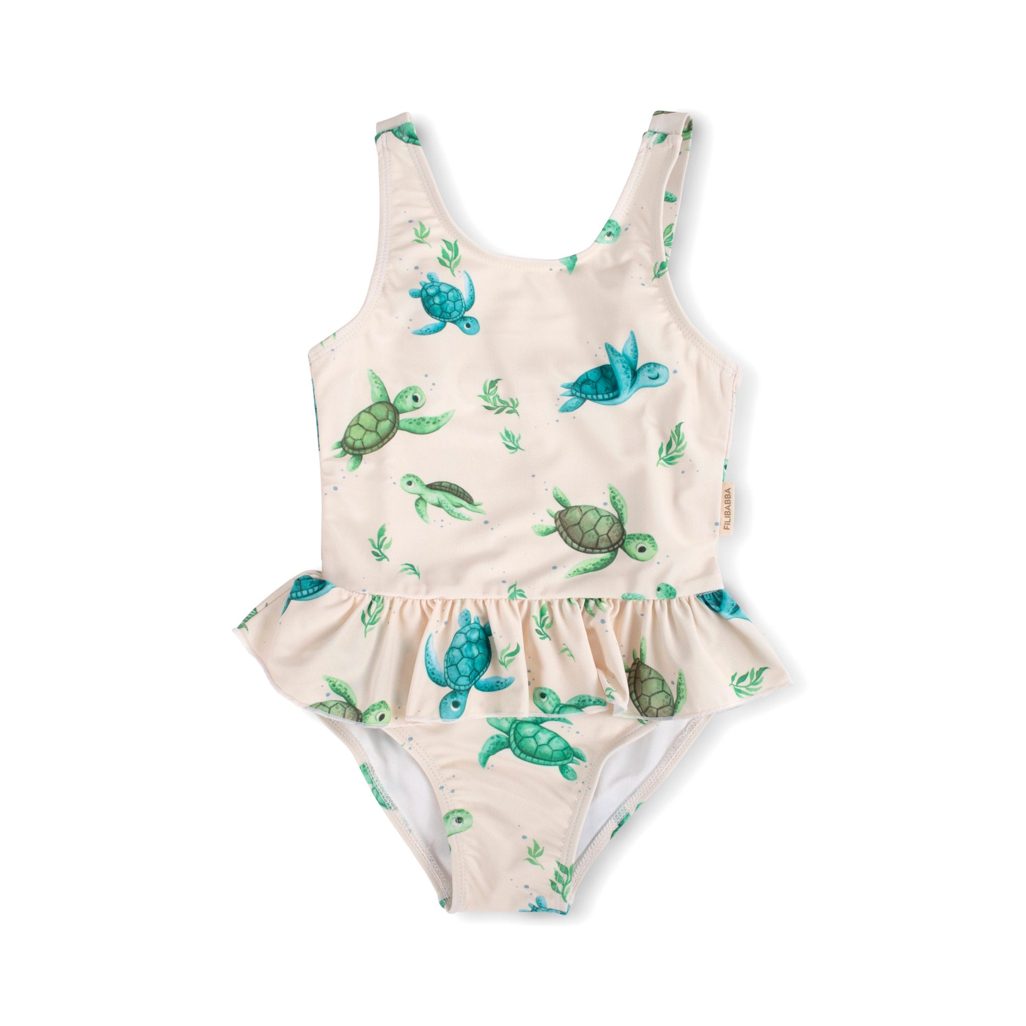 With our lovely bathing suit for children, sunny days at the pool, on the beach or in the garden will be even more beautiful! The great bathing suit with a classic cut, adjustable straps and the elegant, small ruffled skirt offers UV 50 + protection and feels comfortable on the child's soft skin.