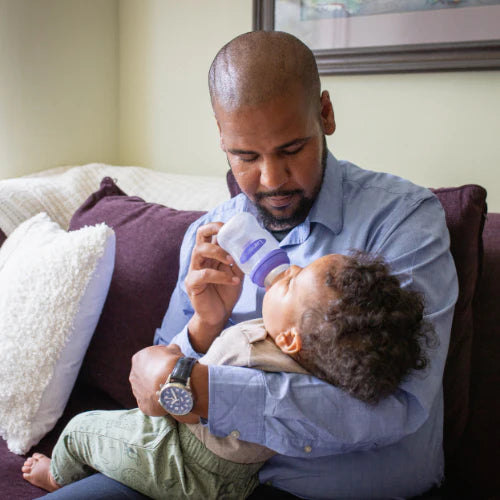 De starterset is aanpasbaar met 2 maten drinkflesjes van respectievelijk 160 ml en 240 ml en 3 maten spenen (S, M en L). Al met al 6 mogelijke combinaties voor je baby om te drinken op zijn of haar ritme.