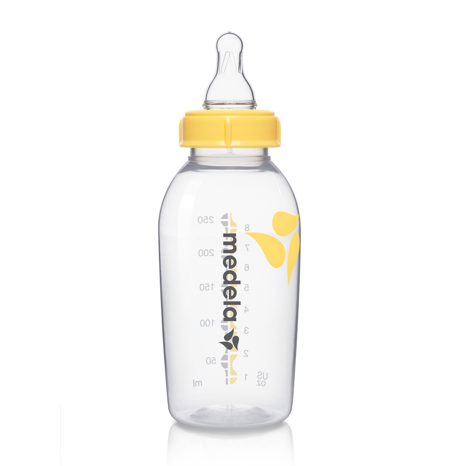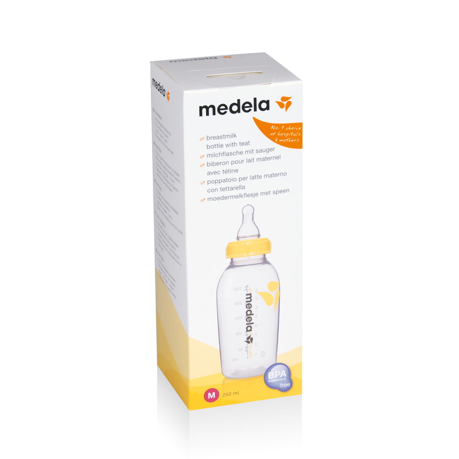 Het Medela flesje met speen is een veelzijdige oplossing voor het kolven, bewaren, meenemen en voeden van afgekolfde melk. Met deze gebruiksvriendelijke flessen van Medela (verkrijgbaar in 150 ml en 250 ml) kun je de melk nauwkeurig afmeten dankzij de maataanduidingen (millimeter en ounce). Deze handige BPA-vrije flessen zijn compatibel met alle borstkolven van Medela. De speen van de fles is verkrijgbaar met langzame of gemiddelde flow, zodat het Medela moedermelk flesje altijd kan worden aangepast aan de leeftijd en behoeften van je groeiende baby.