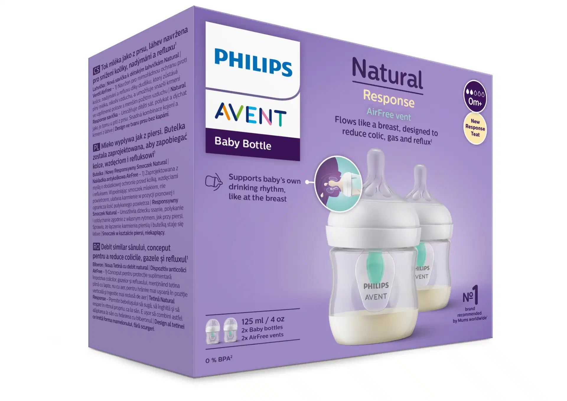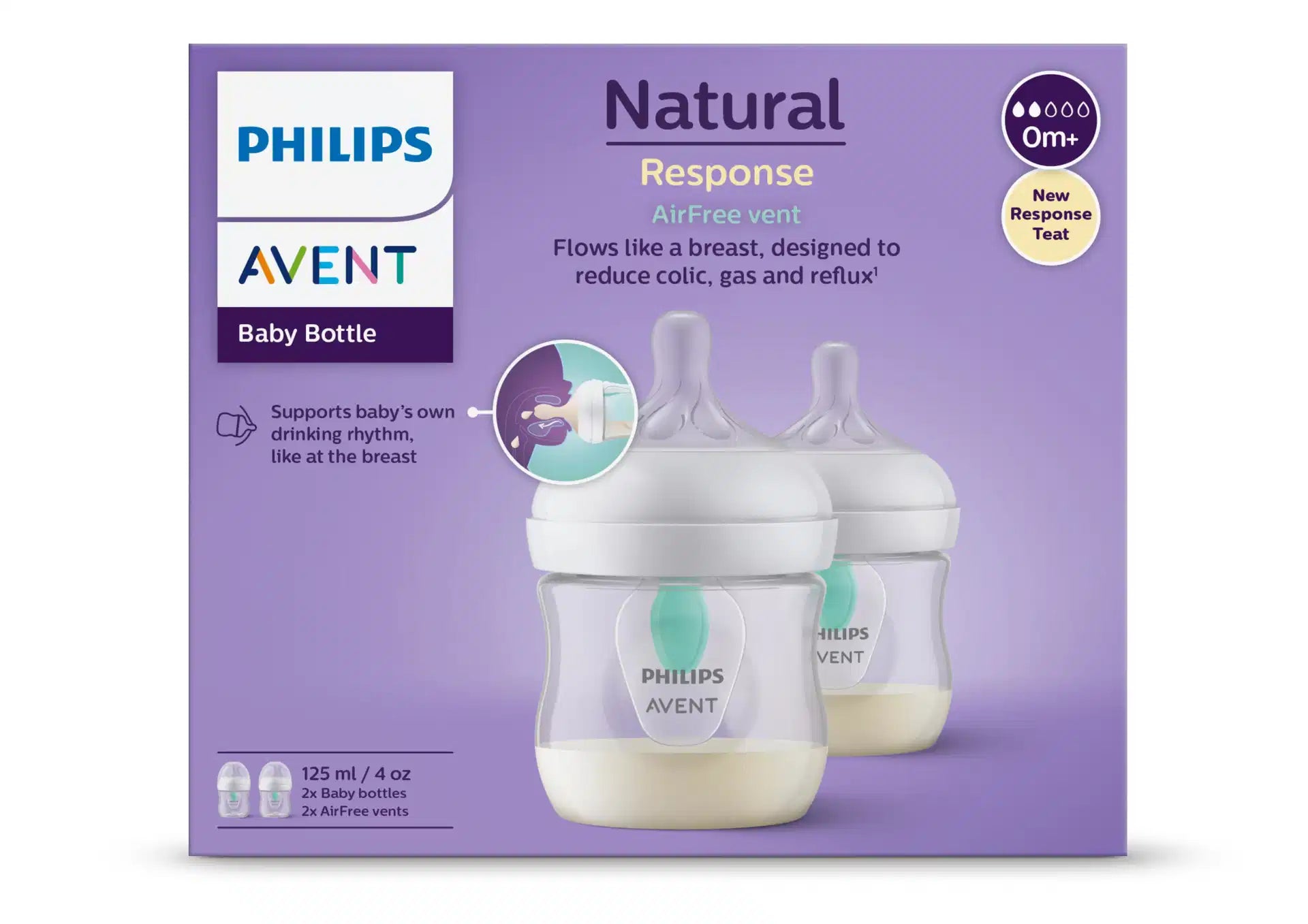 Het AirFree™-ventiel is gemaakt om je baby te helpen minder lucht door te slikken. De speen blijft vol melk zitten, zelfs in horizontale stand, om je baby ook te kunnen voeden als hij rechtop zit. Door de hoeveelheid lucht die een baby inslikt te verminderen, kunnen veelvoorkomende voedingsproblemen zoals krampjes, boertjes en reflux worden vermindert.