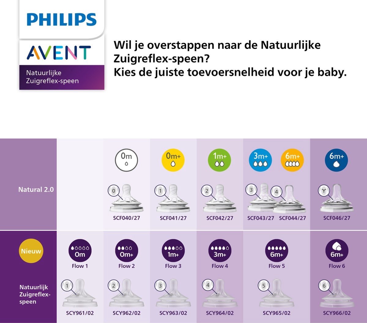 De leeftijden op de verpakkingen zijn slechts indicaties. Elke baby heeft zijn eigen drinkritme. De beste toevoersnelheid hangt af van hoe je baby drinkt.