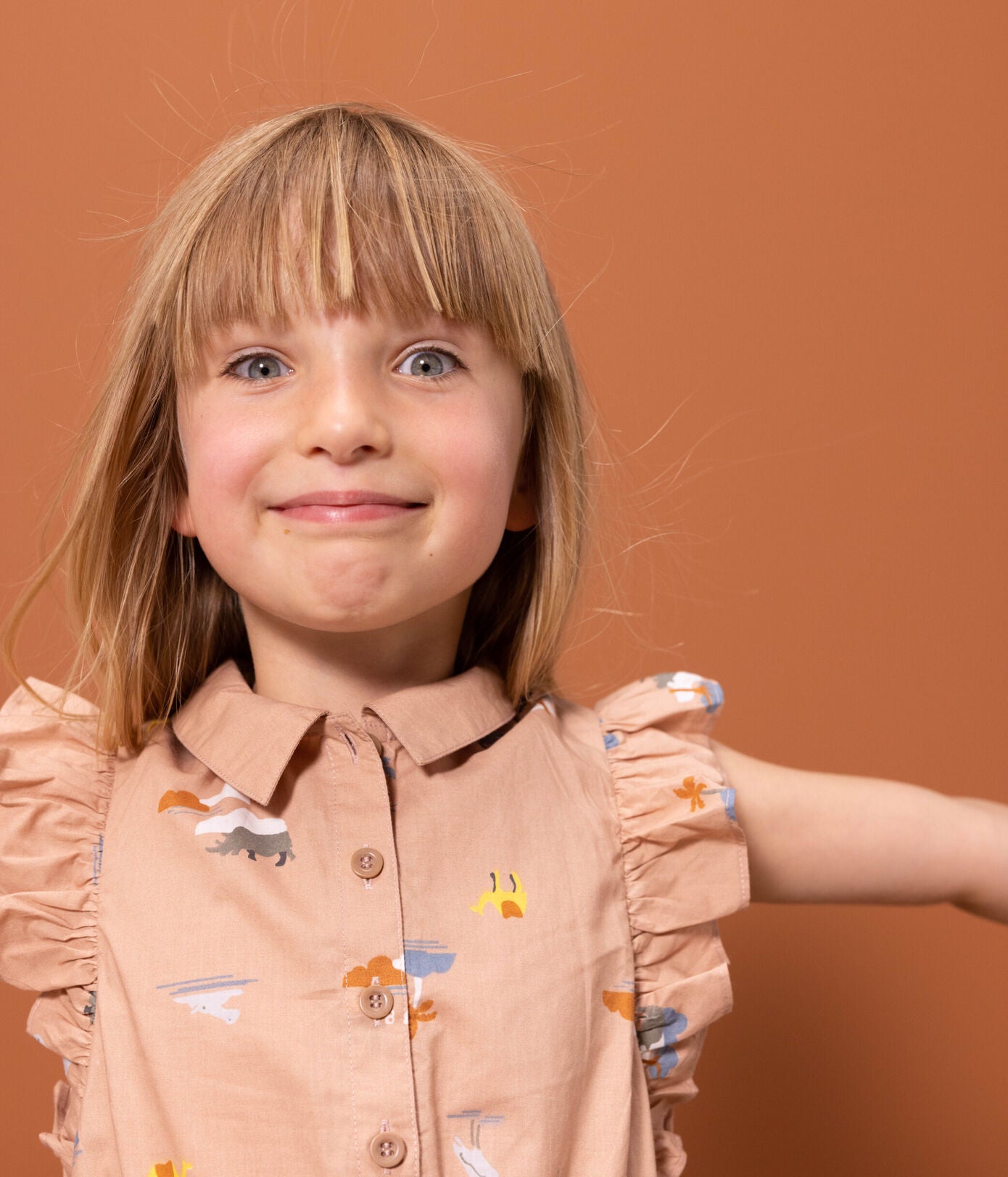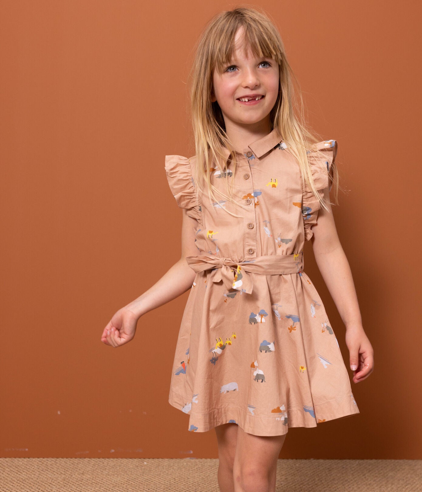 • Vrouwelijke jurk dankzij de kraag, mouwen met ruches en riem om in de taille te strikken.