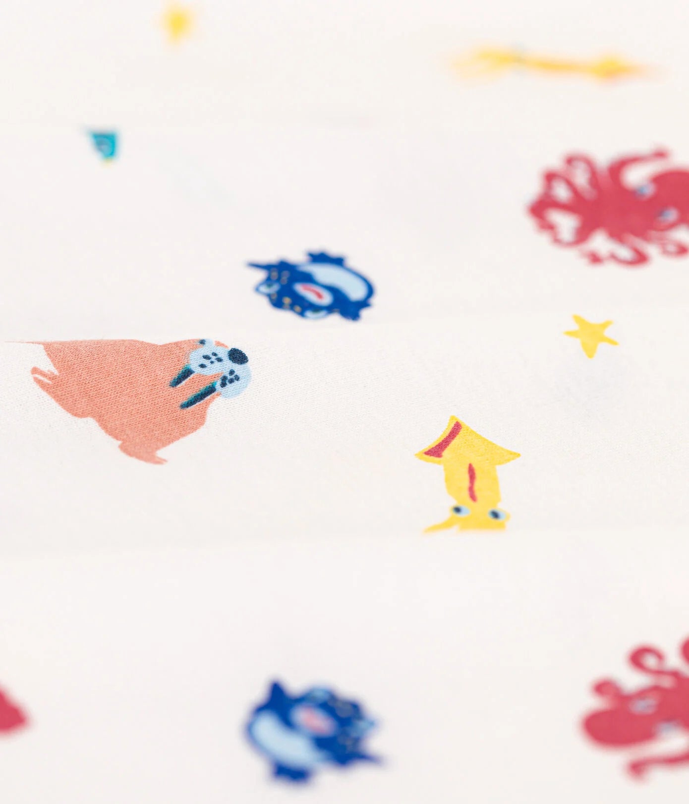 PETIT BATEAU BLIJFT OOK DIT SEIZOEN DE NACHTEN VAN UW KINDEREN VERLICHTEN MET EEN FLICHTGEVENDE PYJAMA. NA CONTACT MET HET LICHT LICHTEN DE GELE ZEEDIERMOTIEVEN OP VOOR EEN GLINSTERENDE NACHT.