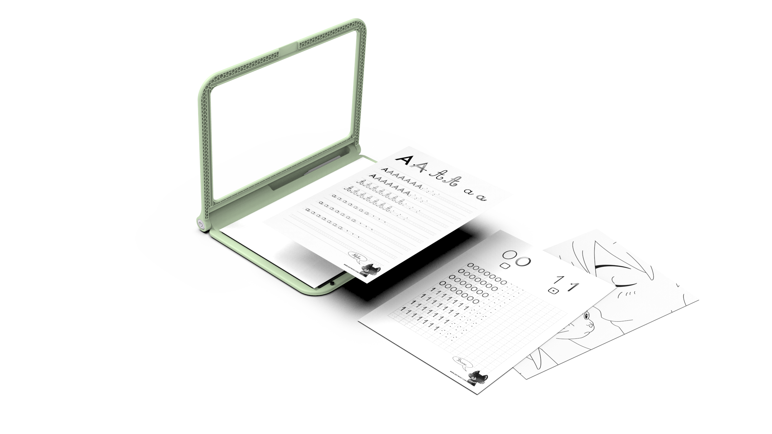 Klem een papier tussen de magnetische houders, doe de LED-verlichting aan en je kiddo is klaar om figuren of letters over te tekenen.