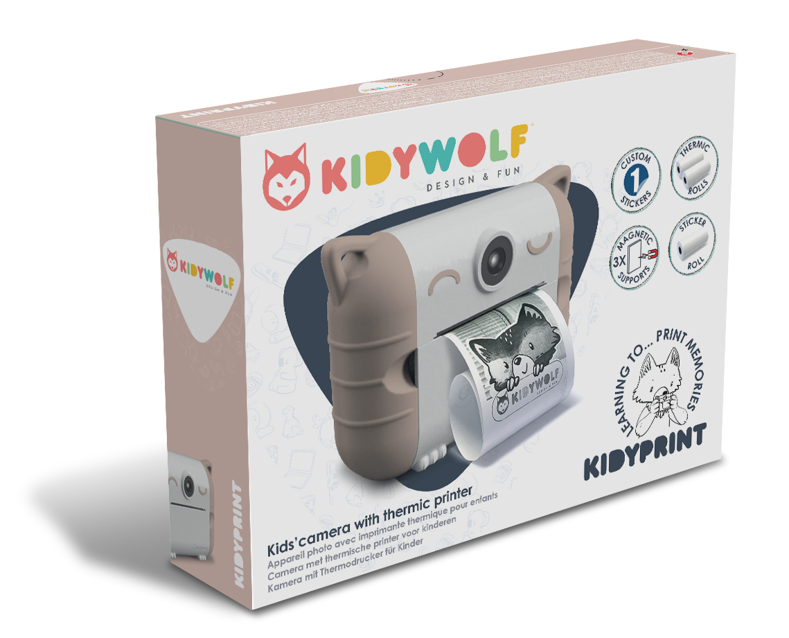 Leuk fototoestel met thermische printer voor kids van Kidywolf: de Kidyprint! Er zit een ingebouwd printertje in deze camera dus je kan de leukste momenten vanaf nu vastleggen met de Kidyprint en meteen afdrukken. De foto's worden in tijdloos zwart-wit afgedrukt.