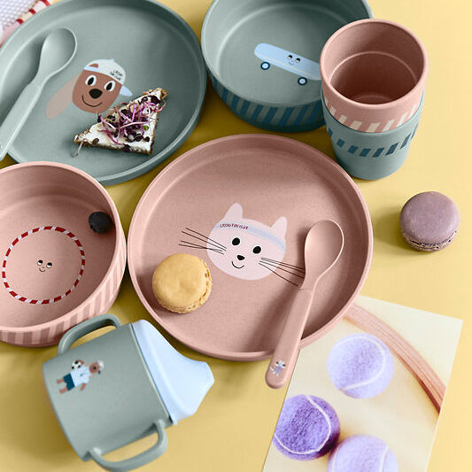 • Duurzaam eetgerei: Kindvriendelijke eetsets gemaakt van milieuvriendelijke materialen zoals bamboe.