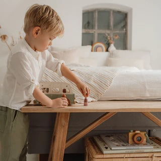 e producten van Little Dutch worden gemaakt van hoogwaardige materialen, zoals hout, textiel en leer. Ze zijn ontworpen om veilig en duurzaam te zijn en om kinderen te stimuleren in hun ontwikkeling. Little Dutch biedt een breed assortiment producten aan, zoals speelgoedauto's, puzzels, poppenhuizen, kleding, bedtextiel en nog veel meer.