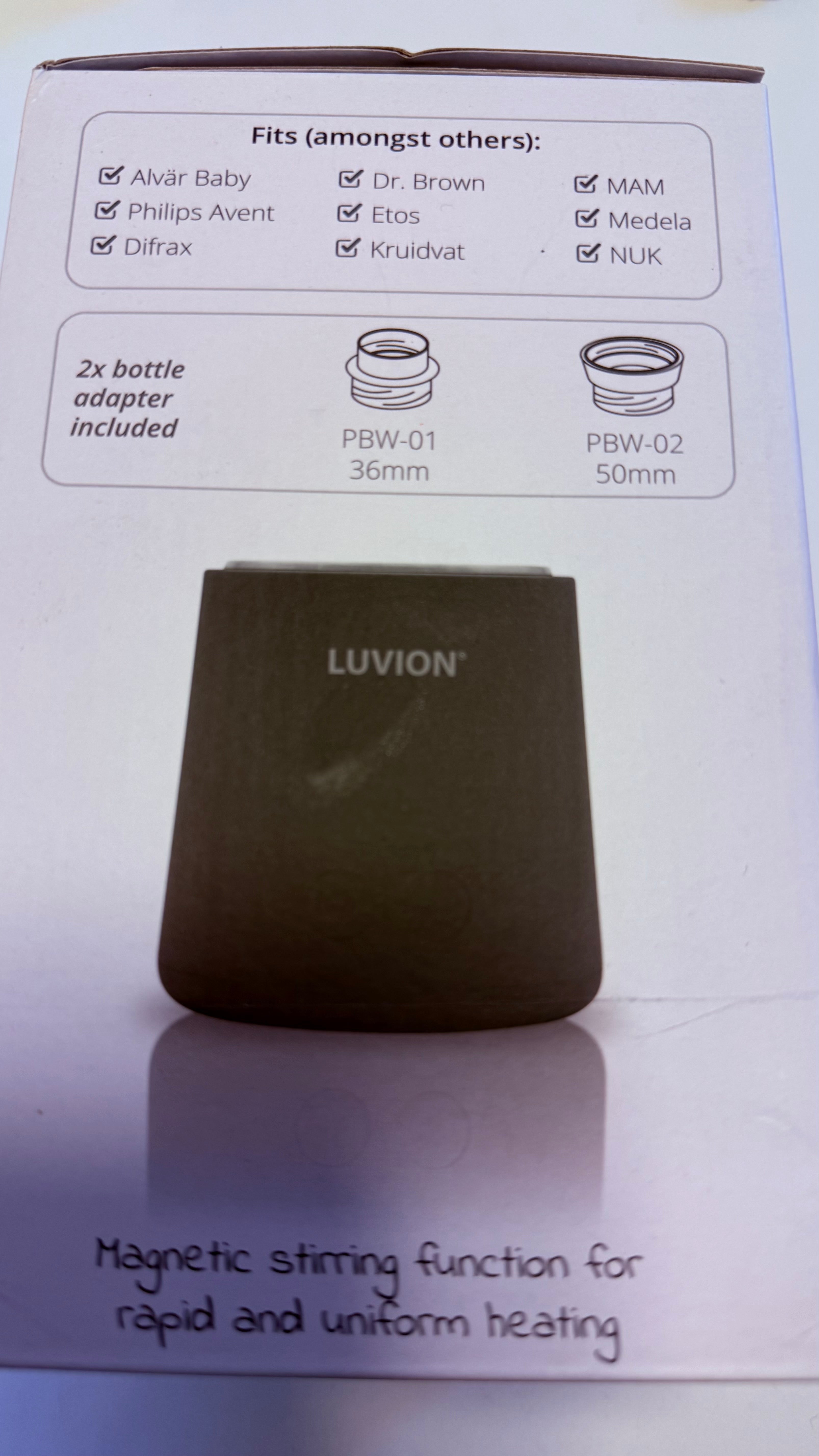 - Wordt geleverd inclusief adapters PBW-01 en PBW-02 waarmee de verwarmer geschikt is voor onder andere Philips Avent, Difrax (brede hals / smalle hals), Dr. Browns (smalle hals), Medela, Nuk (smalle hals), Nuby (smalle hals), BIBS, Etos (smalle hals), Kruidvat (smalle hals)