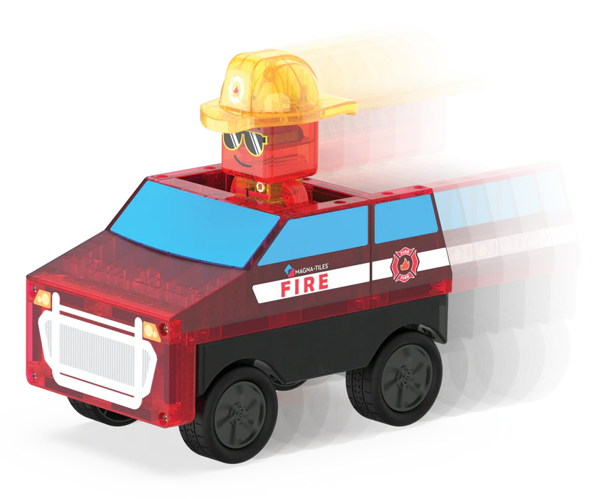 De MAGNA-TILES Fire Rescue 27-delige set heeft een Pullback chassis en aanpasbare Mix & Match brandweermanfiguren, voor spannende brandweeravonturen en eindeloos fantasierijk spel.
