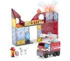50 magnetische stukken, inclusief één Mix and Match brandweermanfiguur, Licht- & Geluid-tegel en uitschuifbare brandweerwagenladder.