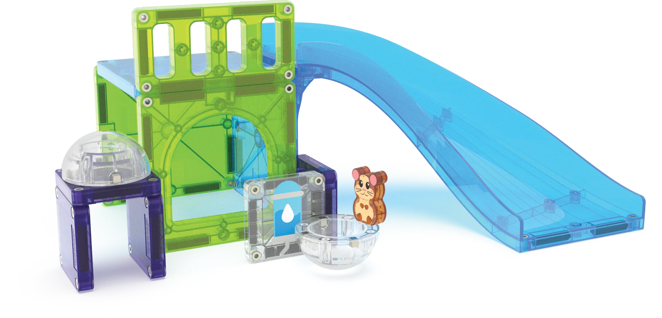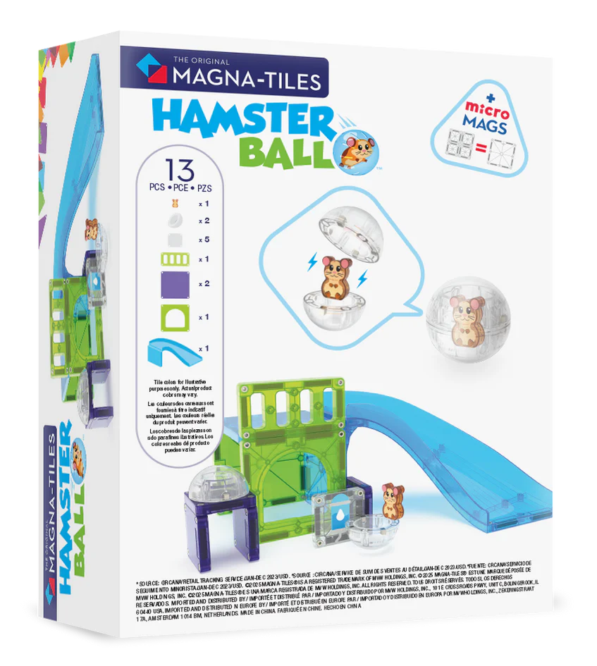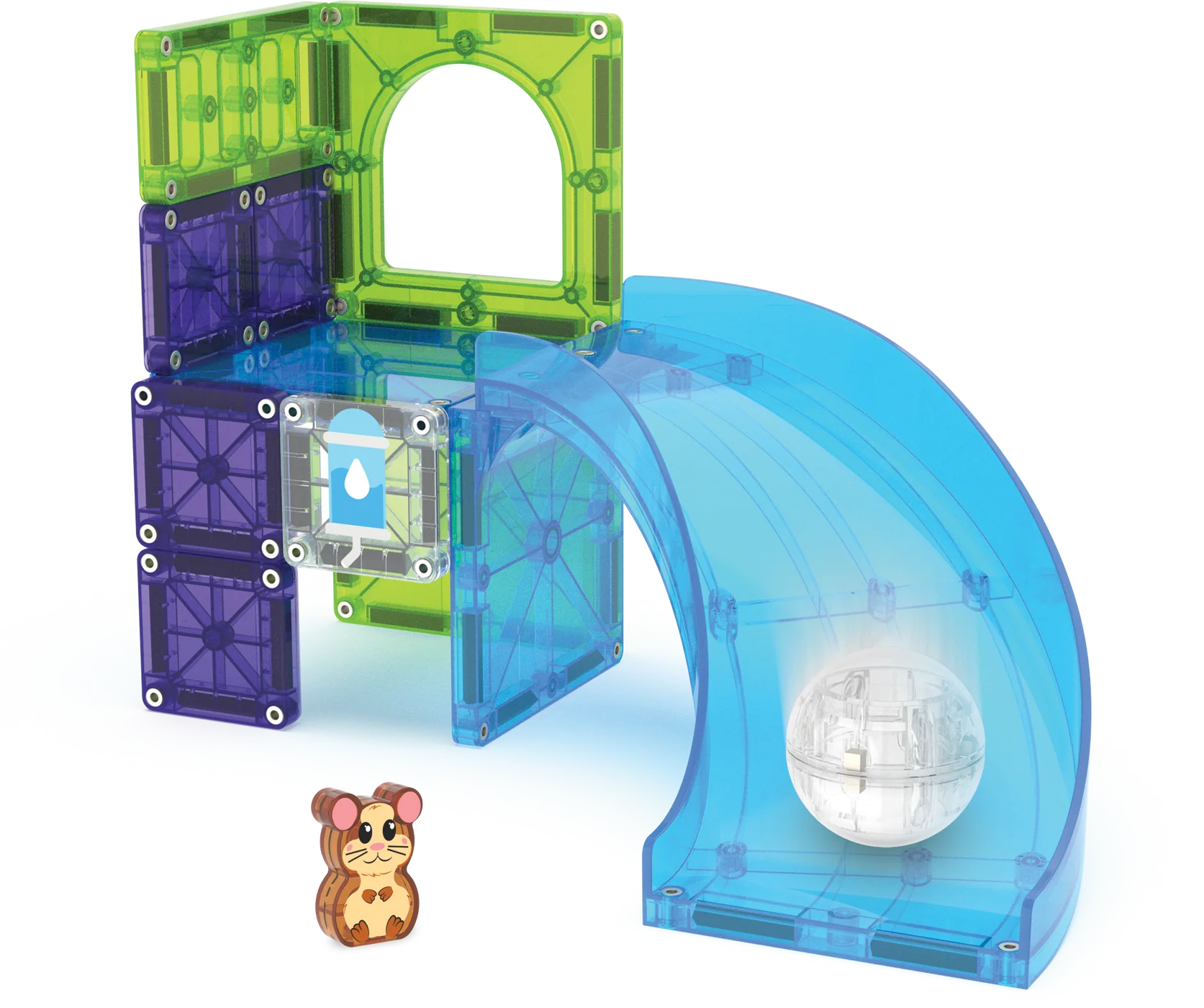 De MAGNA-TILES Hamster Ball set is speciaal ontworpen met een rollende magnetische hamsterbal, een dynamisch glijbaanelement en een schattige hamster – voor nog meer beweging en fantasierijk spelplezier.