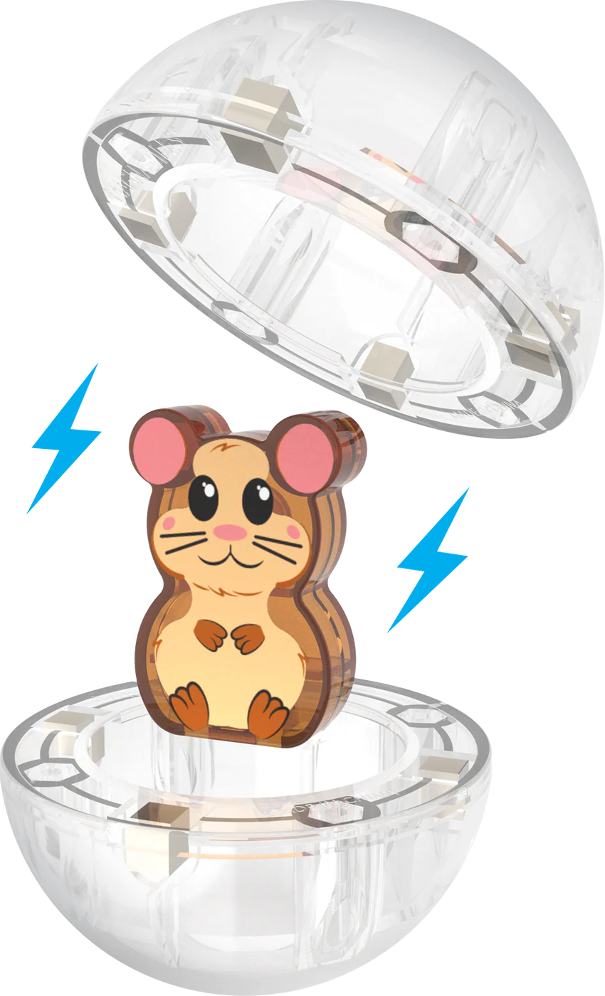 13 magnetische onderdelen, waaronder een exclusieve hamsterfiguur en 2 doorzichtige halve ballen.