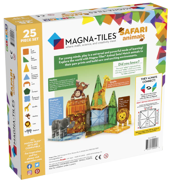 Ga op een safari met de Magna-Tiles® Safari Animals 25-delige set.