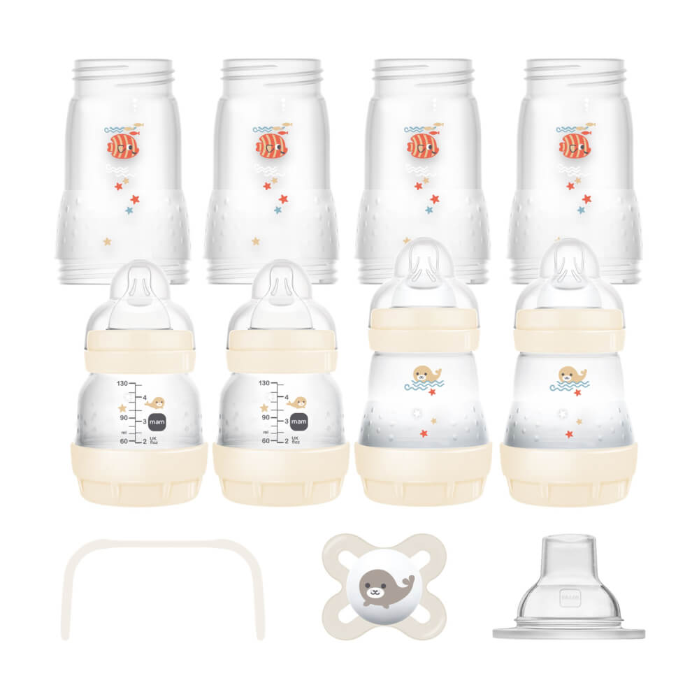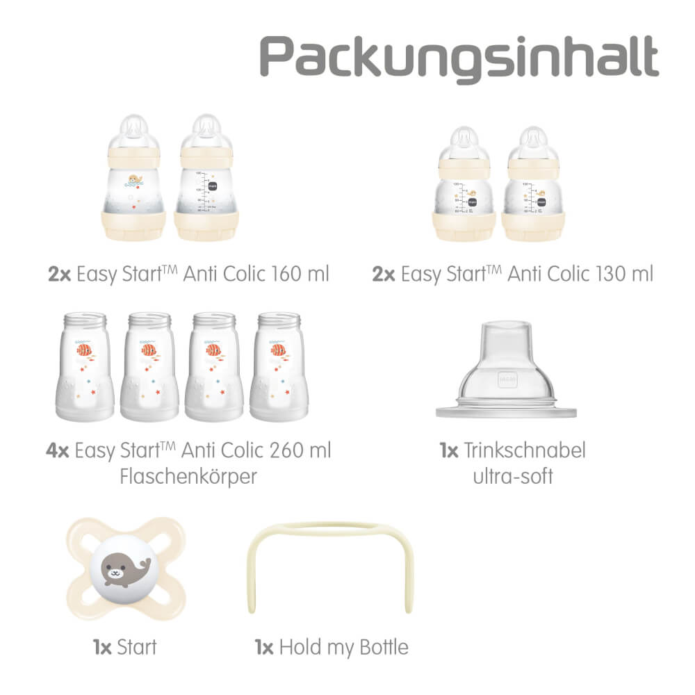 - De MAM Anti-Colic babyflesjes set is de complete eerste flesvoeding set voor baby's. De melkflesjes kunnen onderling gecombineerd worden en groeien met de baby mee.