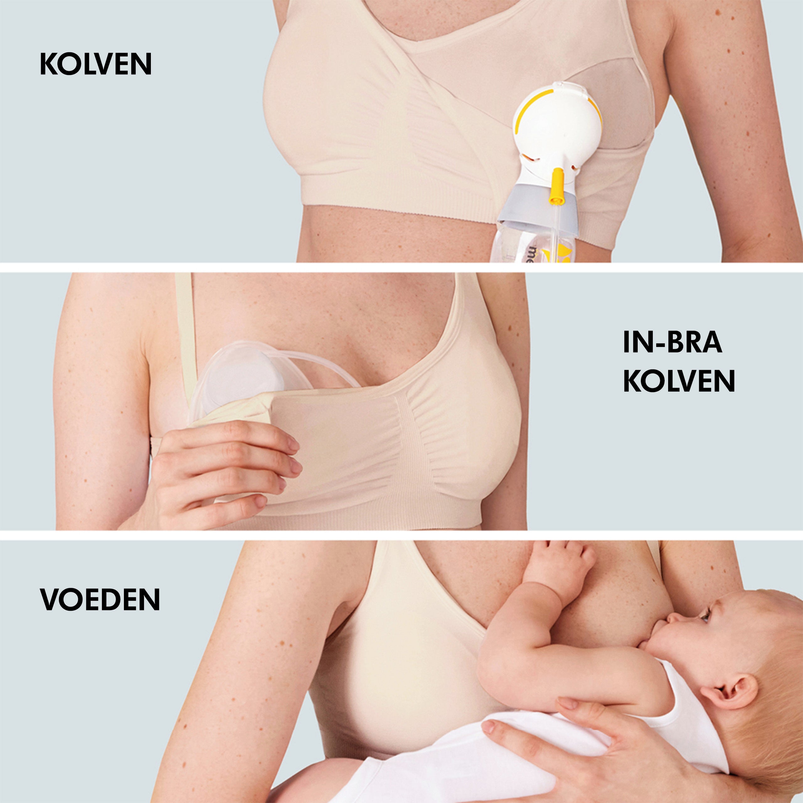 - HANDSFREE AFKOLVEN: Combineer met een elektrische borstkolf van Medela om handsfree af te kolven in slechts 1 handeling of gebruik met een borstkolf in je beha voor een discrete, comfortabele ervaring