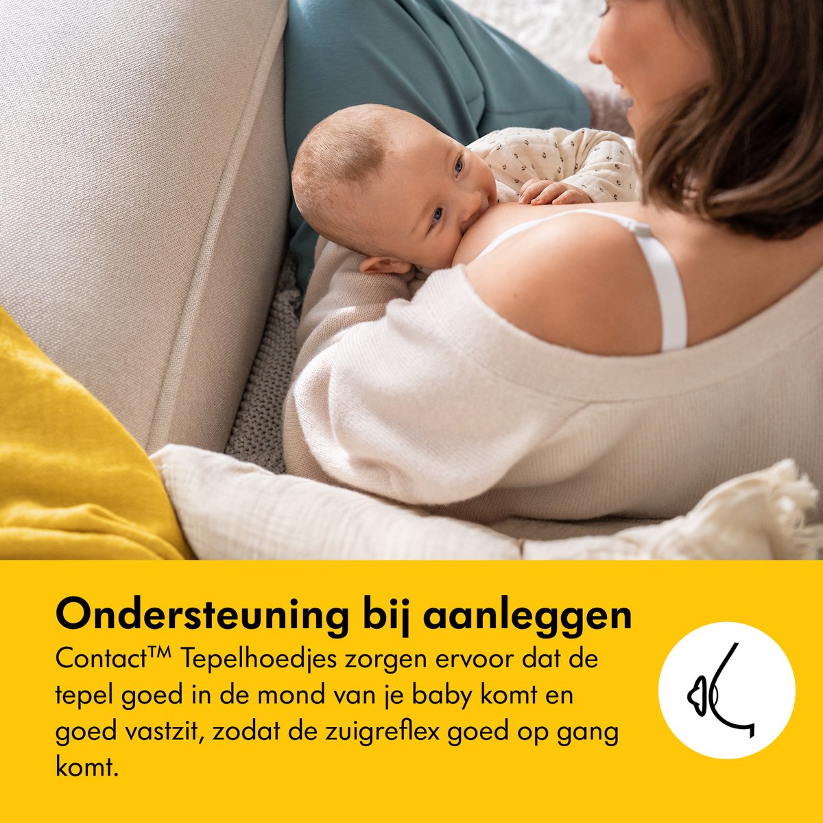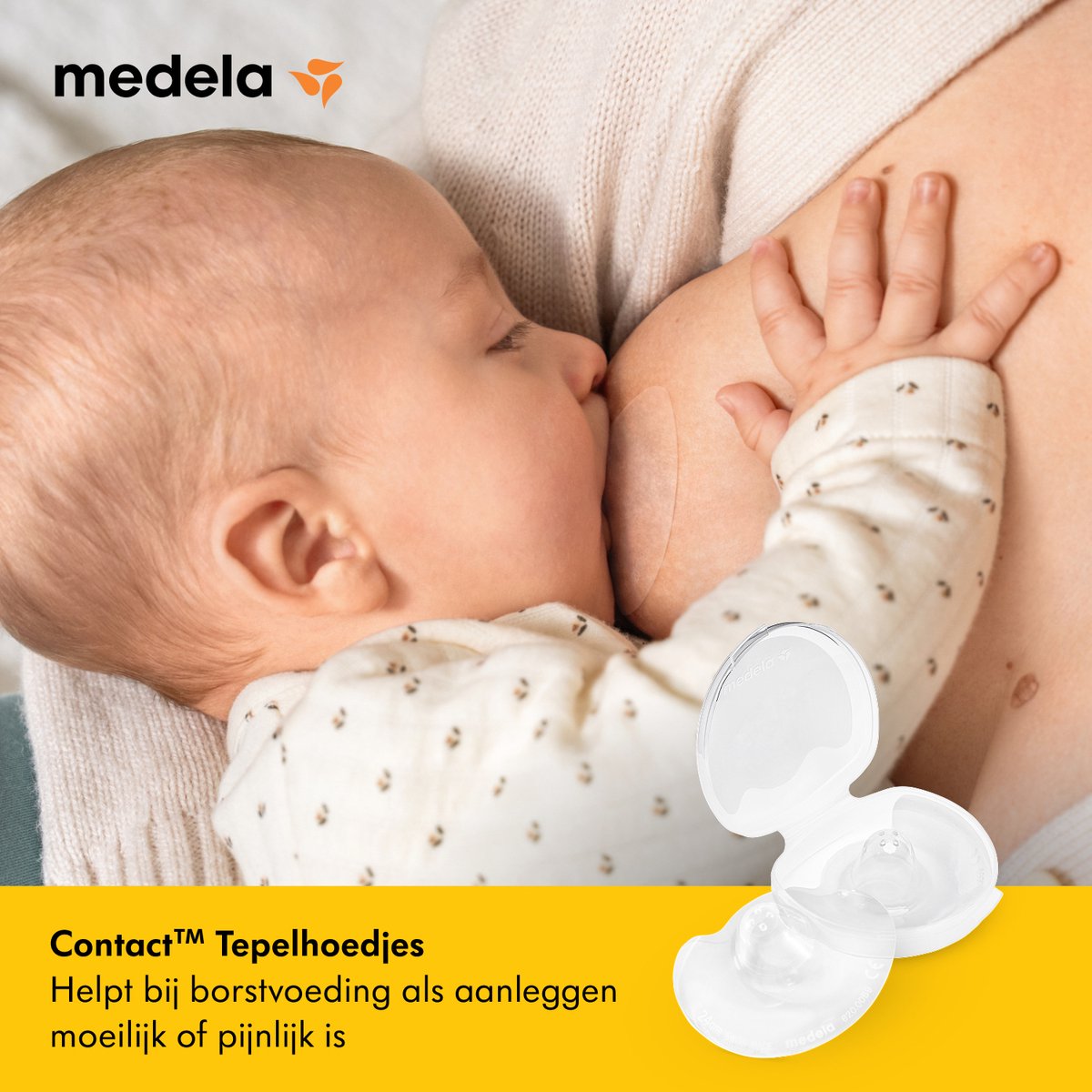 Contact™ tepelhoedjes van Medela maken borstvoeding mogelijk als aanleggen niet goed lukt of pijnlijk is, doordat pijnlijke tepels worden beschermd en je baby makkelijker kan aanhappen.