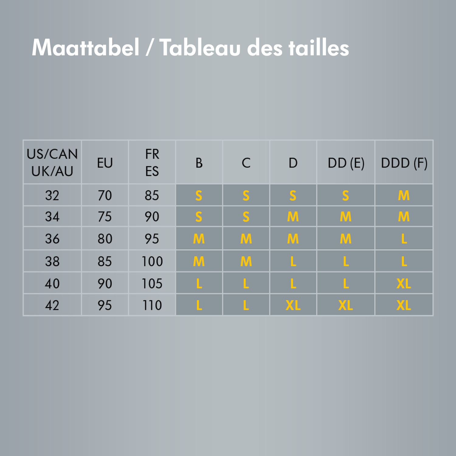 • Superzachte, rekbare band onder de borsten voor een flexibele pasvorm