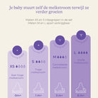 De 60 ml-fles is ideaal vanaf de geboorte: het kleine volume is perfect afgestemd op de kleine hoeveelheden die een pasgeborene per voeding drinkt, zodat het geschikt is voor de frequente, korte voedingen in de eerste weken. Zo wordt verspilling van moedermelk beperkt. De 160 ml-fles sluit vervolgens aan bij de geleidelijke toename van de voedingsbehoeften van de baby.
