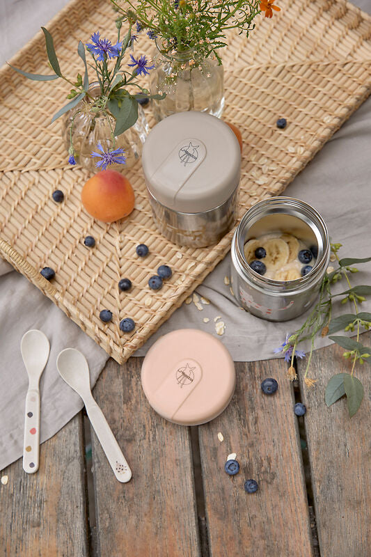 Met de dubbelwandige thermosfles van roestvrij staal is halfvast voedsel of de lunch voor je kleintje direct klaar om te serveren, waar je ook bent.