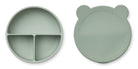 Deze Liewood Rosie kom met vakjes en deksel. Jawel, superhandig! In de prachtige kleuren Faune Green/ Dove Blue Mix met 2 leuke oortjes om heerlijk een stukje fruit of koekjes uit te smullen.Kenmerken