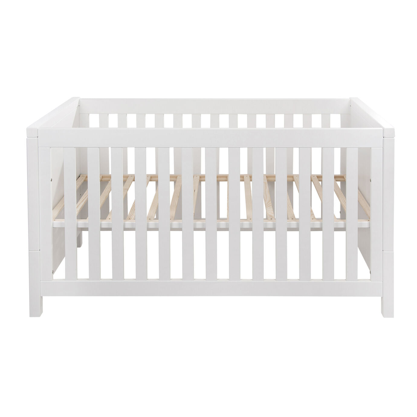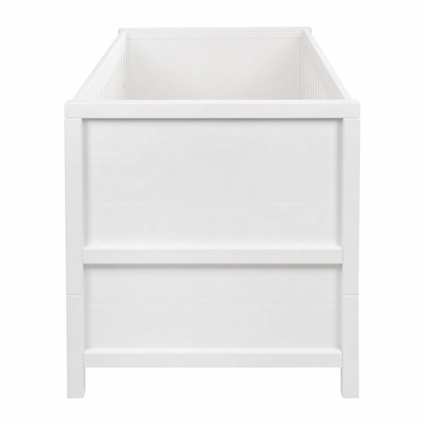 Bij het bedje worden twee extra bedsponden zonder spijlen geleverd om het babybedje naar een juniorbedje om te vormen.