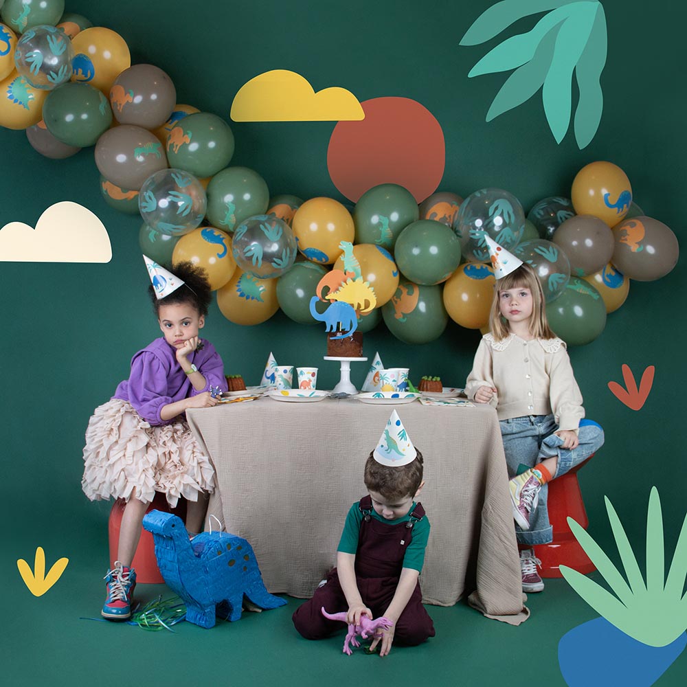 Rrrrrrooooaaarrrr! My Little Day presenteert u haar dinosaurussencollectie, speciaal voor beginnende paleontologen! Deze 8 dinosaurussen feestmutsen zijn ontworpen door My Little Day in Parijs en gemaakt in de EU! Vergeet niet de verjaardagsdecoraties en bekijk de rest van onze dinosaurussencollectie! Servetten, ballonnen, bekers... alles wat je nodig hebt voor een trendy feesttafel met een totaal look!