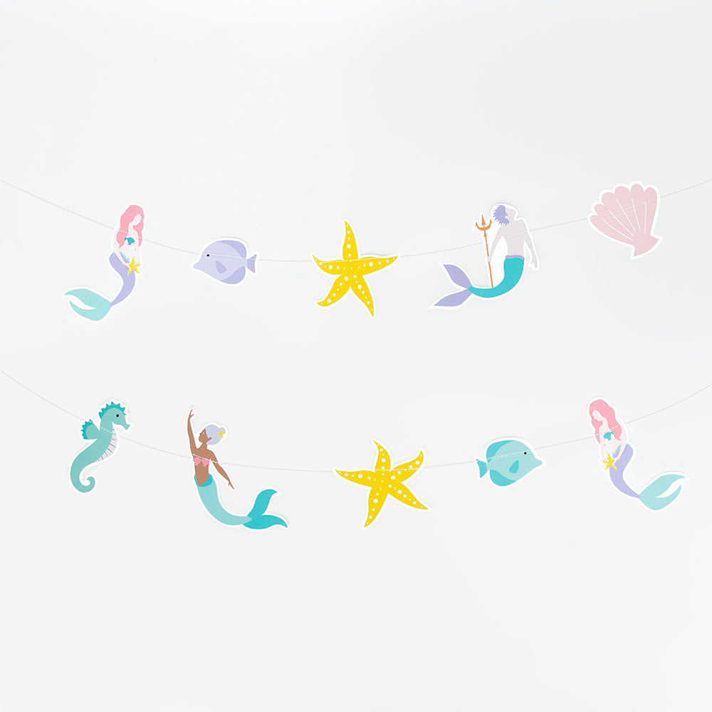 Op een eiland in de zon, zullen we spelen en plezier hebben... Het is tijd voor een reis naar de diepten van de oceaan. Deze 3 meter lange zeemeermin verjaardagsgirlande is ontworpen in Parijs door My Little Day. Het is de perfecte aanvulling op de rest van de collectie voor een onvergetelijk zeemeermin-verjaardagsfeestje!