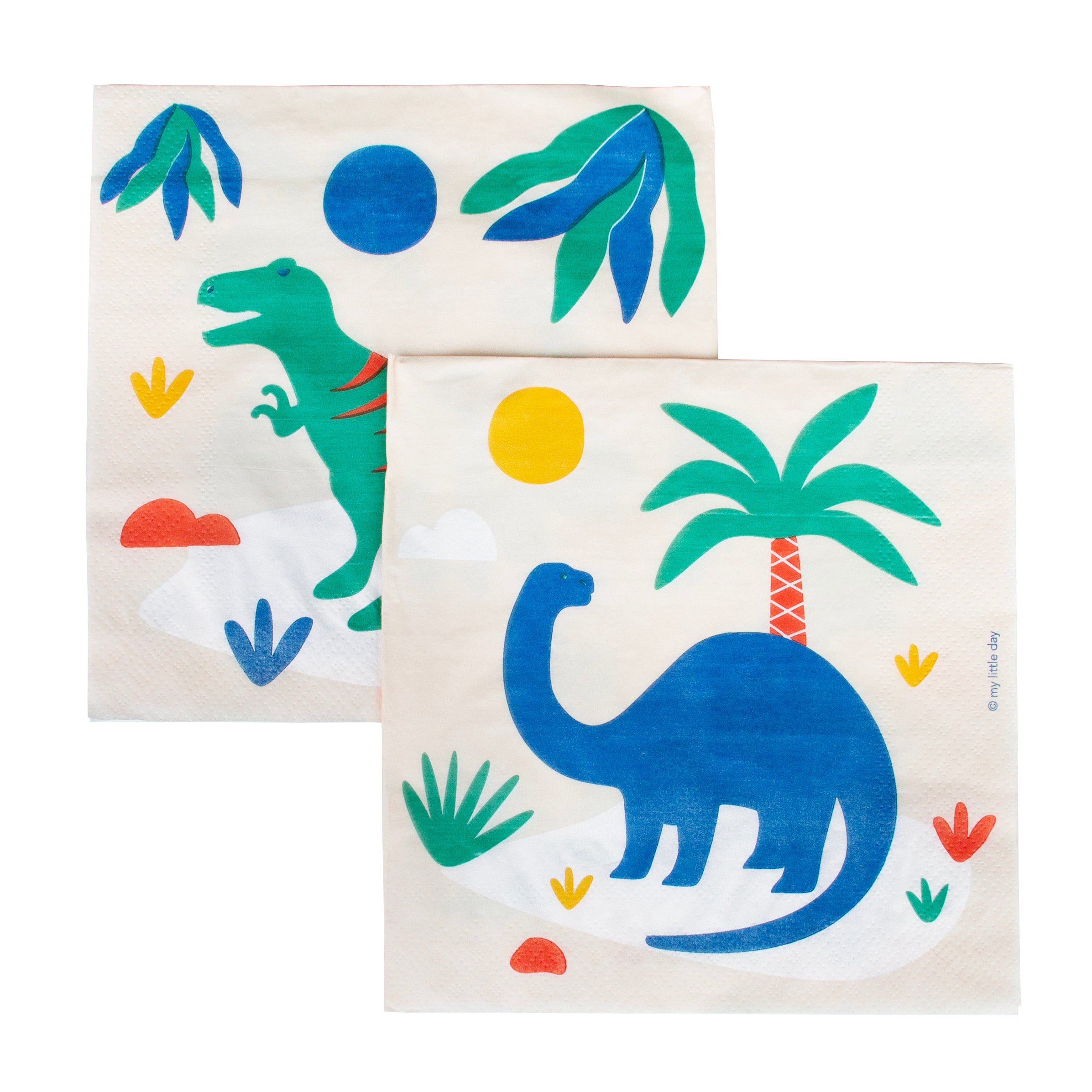 Rrrrrrooooaaarrrr! My Little Day presenteert u haar dinosaurussencollectie, speciaal voor beginnende paleontologen! Deze 20 papieren dinosaurusservetten zijn ontworpen door My Little Day in Parijs en gemaakt in de EU. Ze zijn gemaakt van 100% FSC-papier, plantaardige inkten en hun verpakking is van cellulosefolie, volledig recyclebaar en milieuvriendelijk! Zet ze op een tafel met de dinosaurusborden en je hebt een feestelijk geheel voor je kleine paleontoloog!