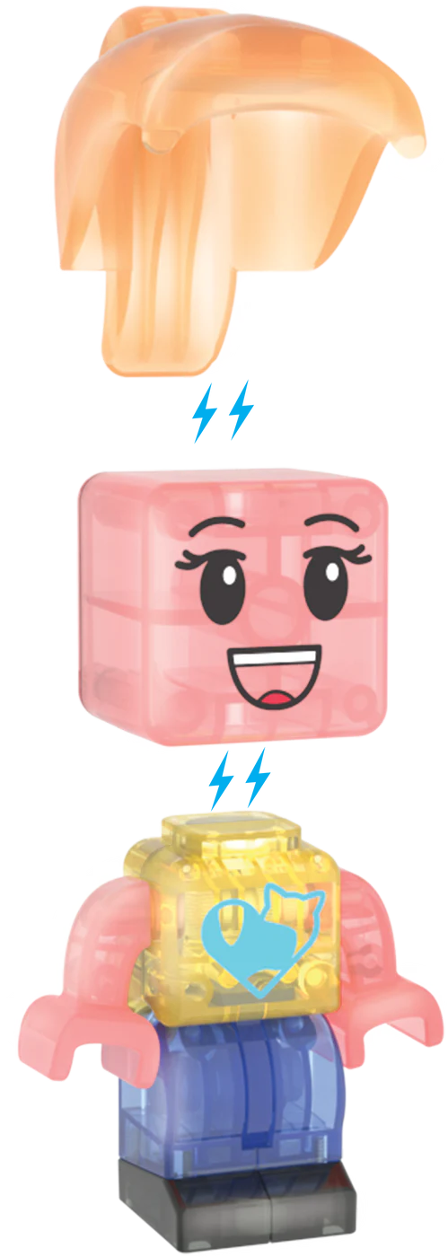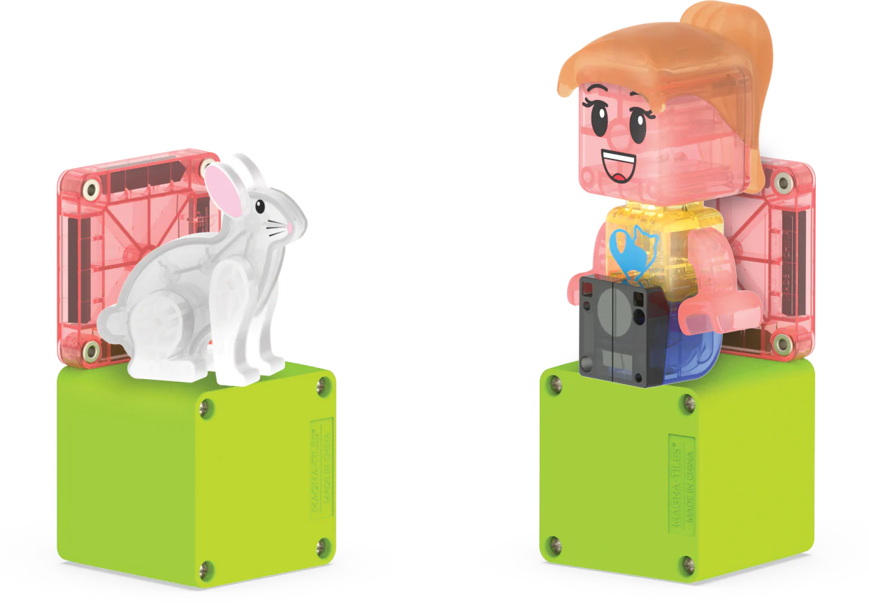 50 magnetische onderdelen, waaronder vier nieuwe huisdierfiguren, een Mix and Match Dierenverzorger en een nieuwe Glijbaan.