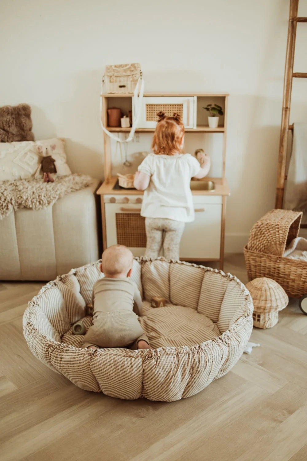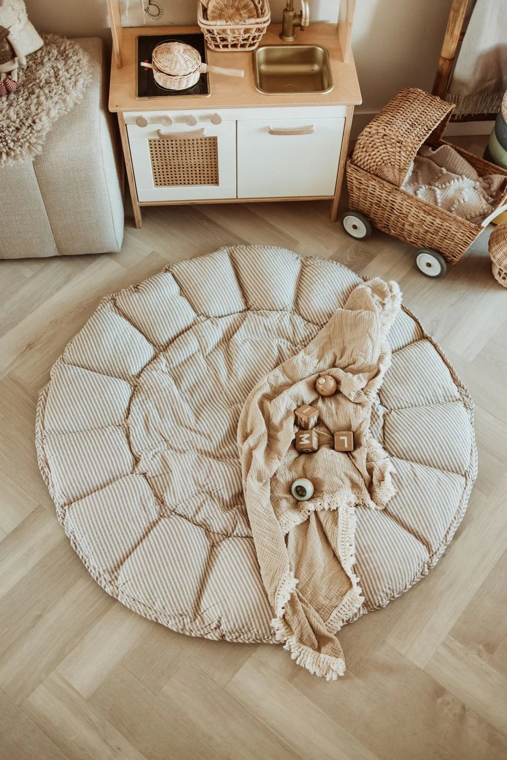 Play&Go Bloom is een unieke 3-in-1 speelmat die meegroeit met je kind. In opgetrokken toestand vormen de bloemblaadjes een nestje voor je baby, met zachte opstaande randen om hem te beschermen. Als de speelmat in bloei staat, gaat het open en worden de randen verlaagd, zodat er een grote, comfortabele speelmat voor jouw baby ontstaat. Perfect voor rustmomenten, spelen onder toezicht en ontdekkingsmomenten. De Bloom kan ook worden geïnstalleerd in een kinderkamer of speelkamer, om het favoriete speelgoed van je kind op te bergen en alles op één plek te bewaren.
