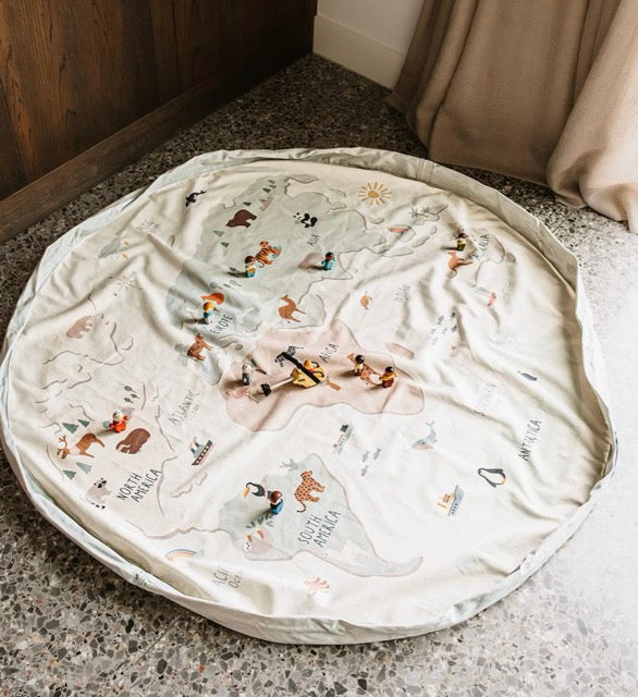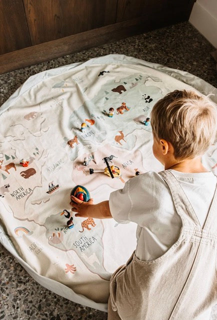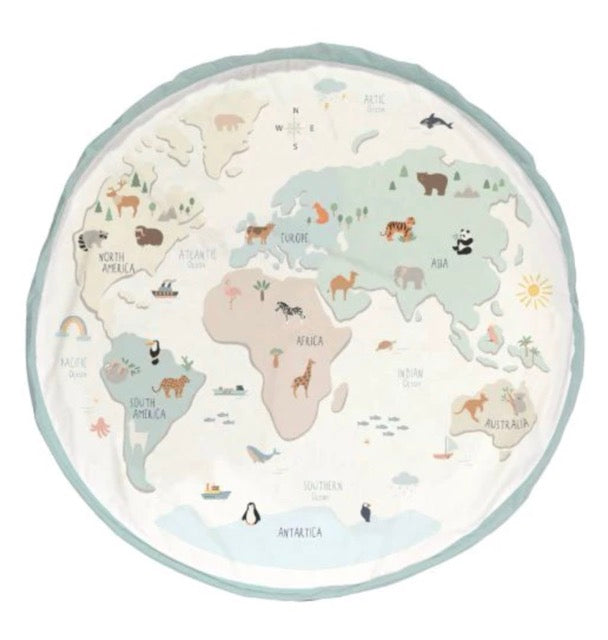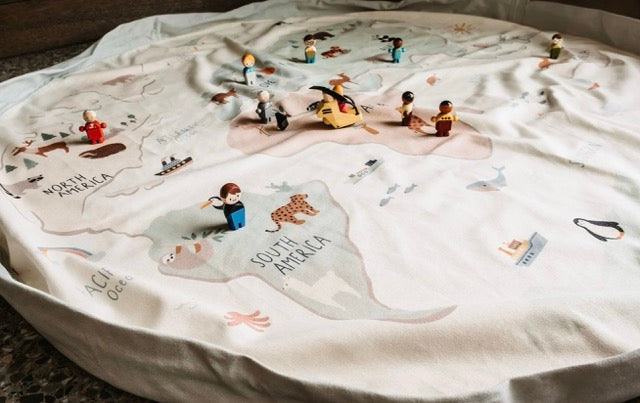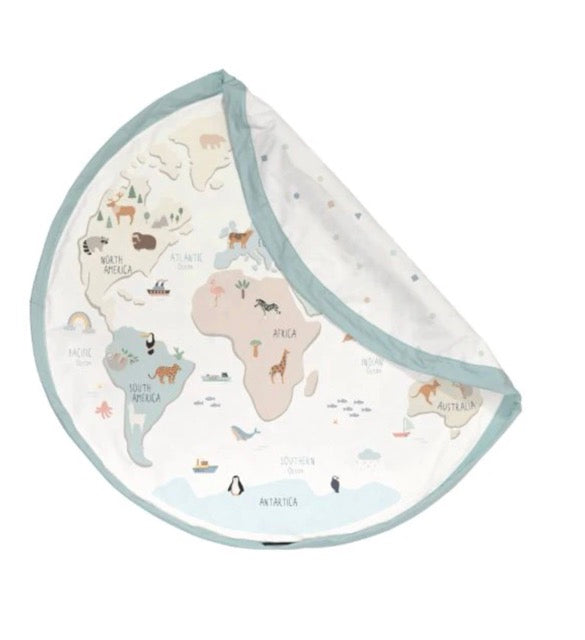 Play and Go noomad opbergzak speelmat - organic cotton - Wereldkaart
