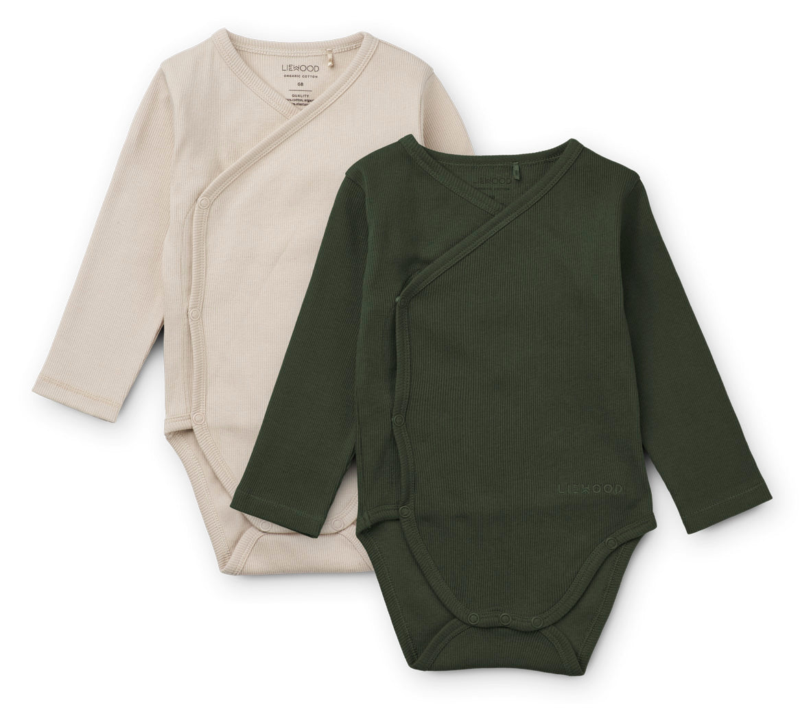 Liewood hali body size 68 stocking lange mouwen 2-pack hunter green/sandy mix