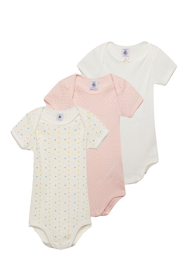 Petit Bateau set van 3 katoenen body's met korte mouwen met hartjes