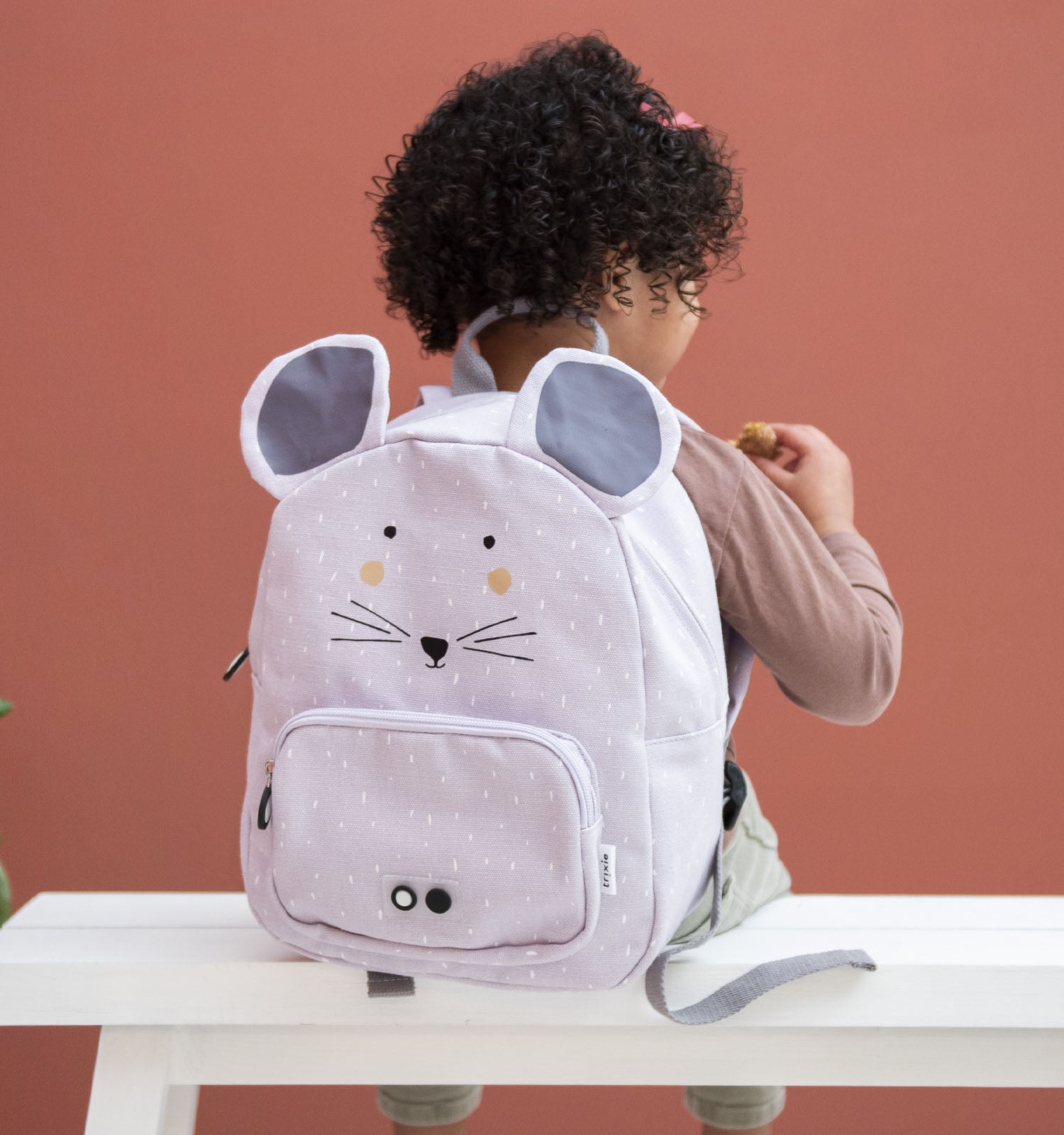 Met dit schattige rugzakje is je kindje helemaal klaar voor elke leuke activiteit of eerste schooldag! De rugzak heeft verstelbare en gewatteerde schouderriemen en aan de bovenkant een handvat om gemakkelijk te kunnen ophangen. De gesp op de borst zorgt ervoor dat de schouderriemen niet van de schouders glijden. Er is ook een klein zakje aan de voorkant voorzien en de ritsen van het grote compartiment en het voorste zakje zijn voorzien van een groter trekkertje zodat de kindjes ze zelf eenvoudig kunnen openen en sluiten. Om te vermijden dat je kindje z'n rugzakje kwijtspeelt, hebben we langs de binnenkant een naamlabel voorzien.