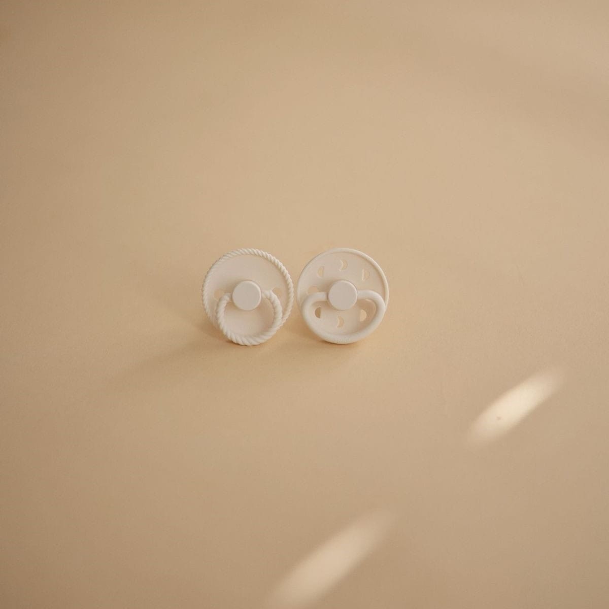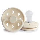 FRIGG Moon Phase is een fopspeen geïnspireerd op de bewegende maan. De verschuivende maanfasen worden weerspiegeld op het schild van de fopspeen en ze fungeren als luchtgaten om de gevoelige babyhuid te ventileren.