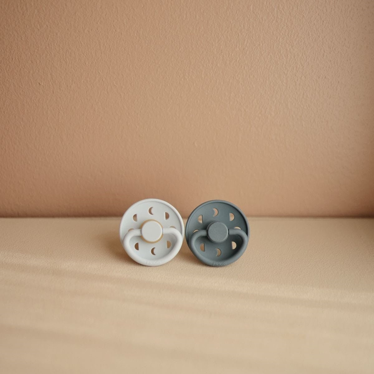 FRIGG Moon Phase is een fopspeen geïnspireerd op de bewegende maan. De verschuivende maanfasen worden weerspiegeld op het schild van de fopspeen en ze fungeren als luchtgaten om de gevoelige babyhuid te ventileren.