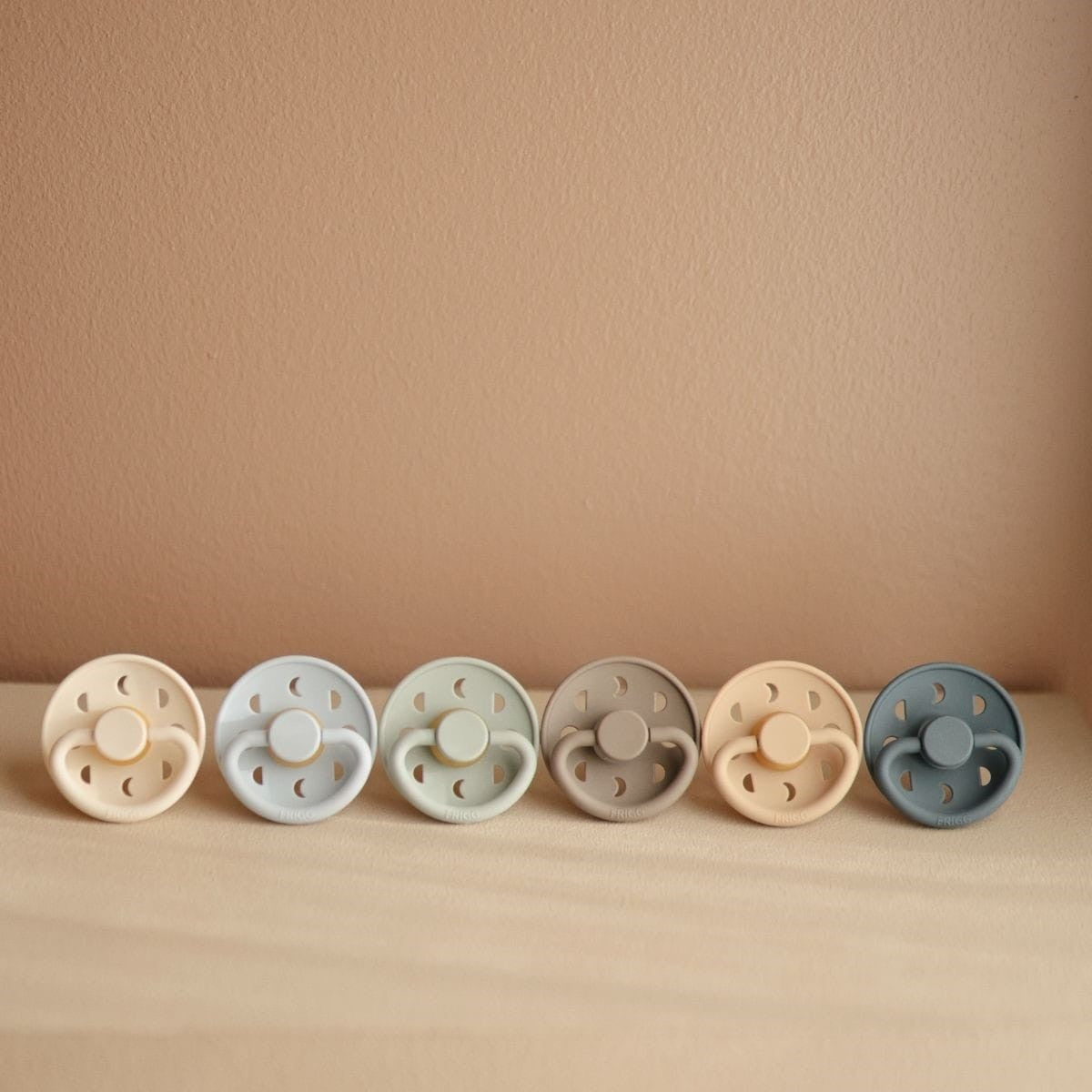 De Frigg fopspenen zijn verkrijgbaar in tal van trendkleuren en vormen.